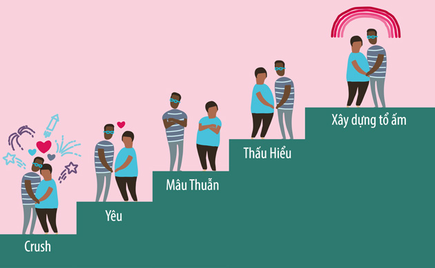 Mark Travers, tiến sĩ tâm lý học tại ĐH Cornell (Mỹ) đã xác định một trình tự chung của quá trình tiến hóa hôn nhân, bao gồm 6 giai đoạn chính.